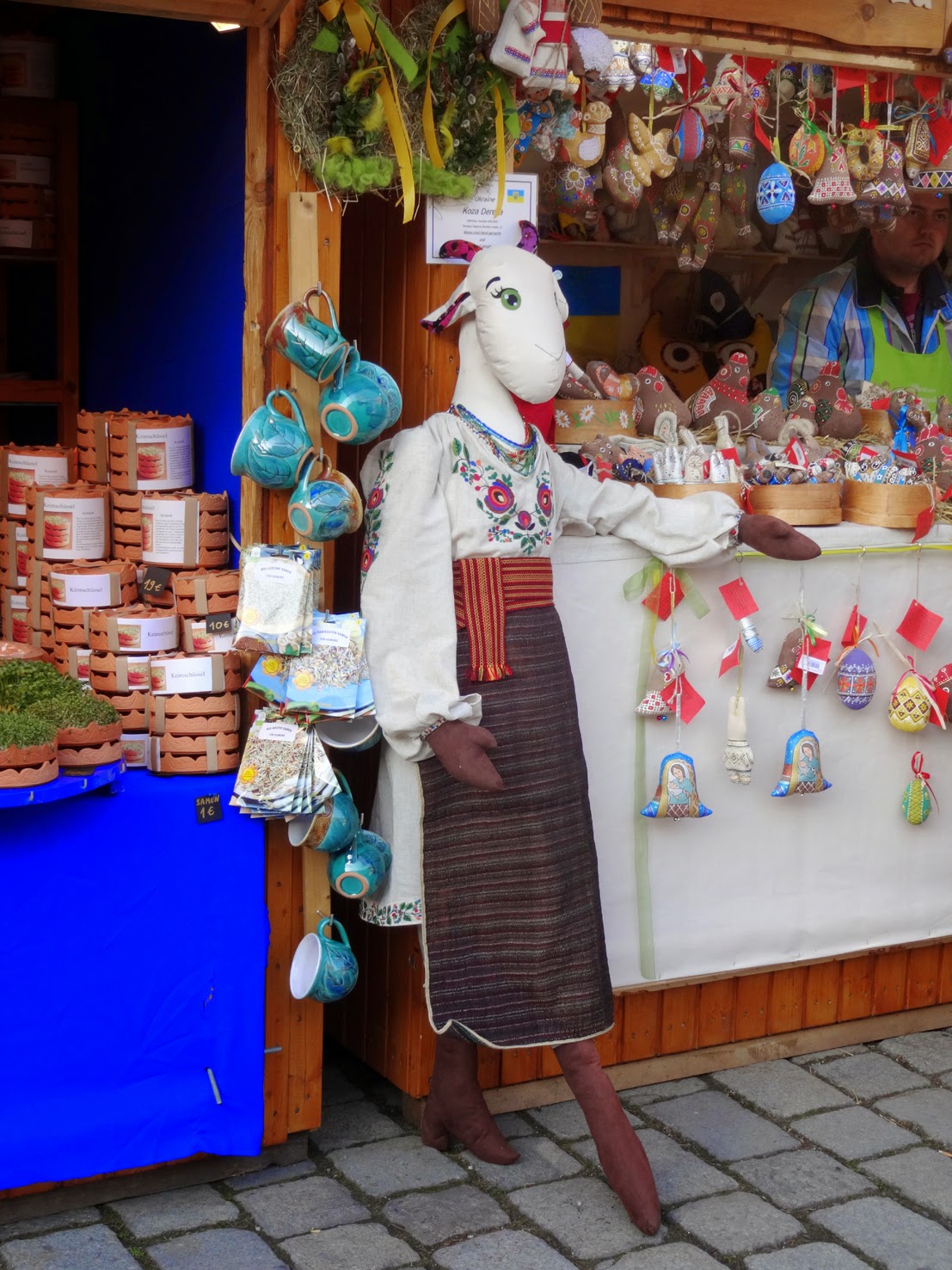 This cute nanny goat designates a stand with ethnic Easter decorations from the Ukraine at the Old Vienna Easter Market.